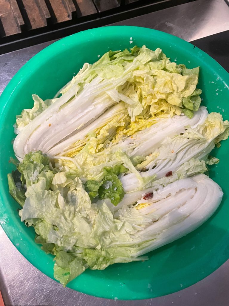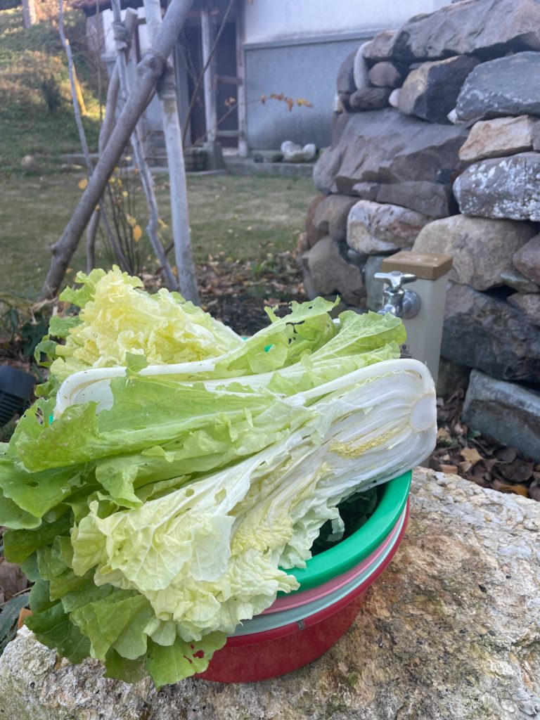 漬けた半分は、仕込んでおいたキムチヤンニョムをすりこみ、自家製白菜キムチにしたいと思います。