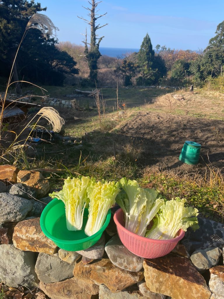 黄色い芯が美しい、生食にも適した「花芯白菜」です。手作り肥料でもここまで立派に育ったことに感激しつつ・・・